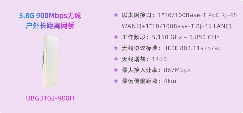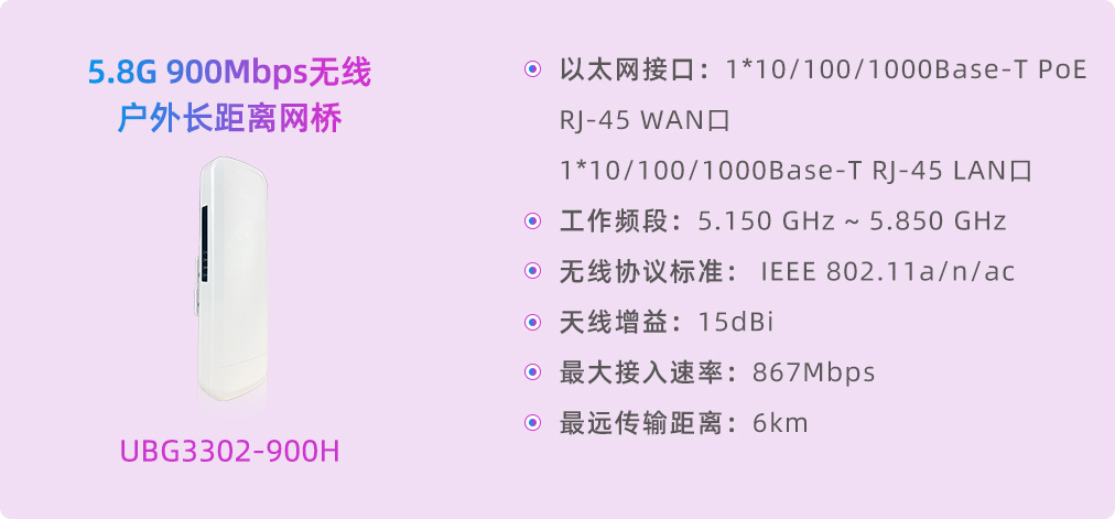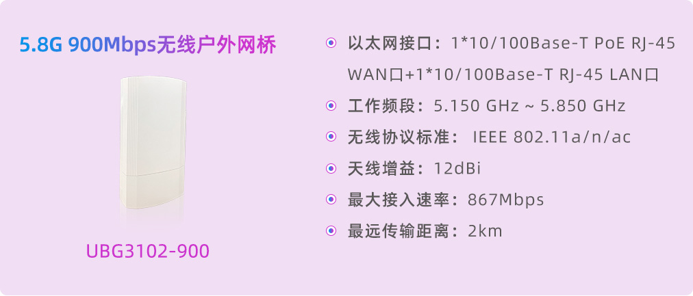 無線網(wǎng)橋作為現(xiàn)代通信技術(shù)的佼佼者,專為視頻監(jiān)控與無線接入打造,已在多領(lǐng)域展現(xiàn)獨特優(yōu)勢與廣闊前景。通過集成高增益定向天線,它突破了傳統(tǒng)線纜限制,提供高效、穩(wěn)定、可靠的遠(yuǎn)程連接方案。優(yōu)特普無線網(wǎng)橋高性能、高增益、高靈敏度、高帶寬,顯著提升無線傳輸性能與穩(wěn)定性,廣泛應(yīng)用于園區(qū)、景區(qū)、工廠、碼頭、工地及停車場等遠(yuǎn)距離數(shù)據(jù)傳輸場景。