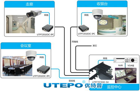 網(wǎng)電速聯(lián)同軸線網(wǎng)絡(luò)延長設(shè)備UTP7201EOC應(yīng)用在廣西桂林中西醫(yī)結(jié)合醫(yī)院的視頻監(jiān)控系統(tǒng)中,通過同軸線進行網(wǎng)絡(luò)高清信號的傳輸,實現(xiàn)了該醫(yī)院監(jiān)控系統(tǒng)從模擬到網(wǎng)絡(luò)的無縫升級,解決了工程改造的難題。該方案的成功應(yīng)用是當前建筑中尚大量存在的模擬監(jiān)控系統(tǒng)向網(wǎng)絡(luò)高清進行改造升級的一個典型案例。