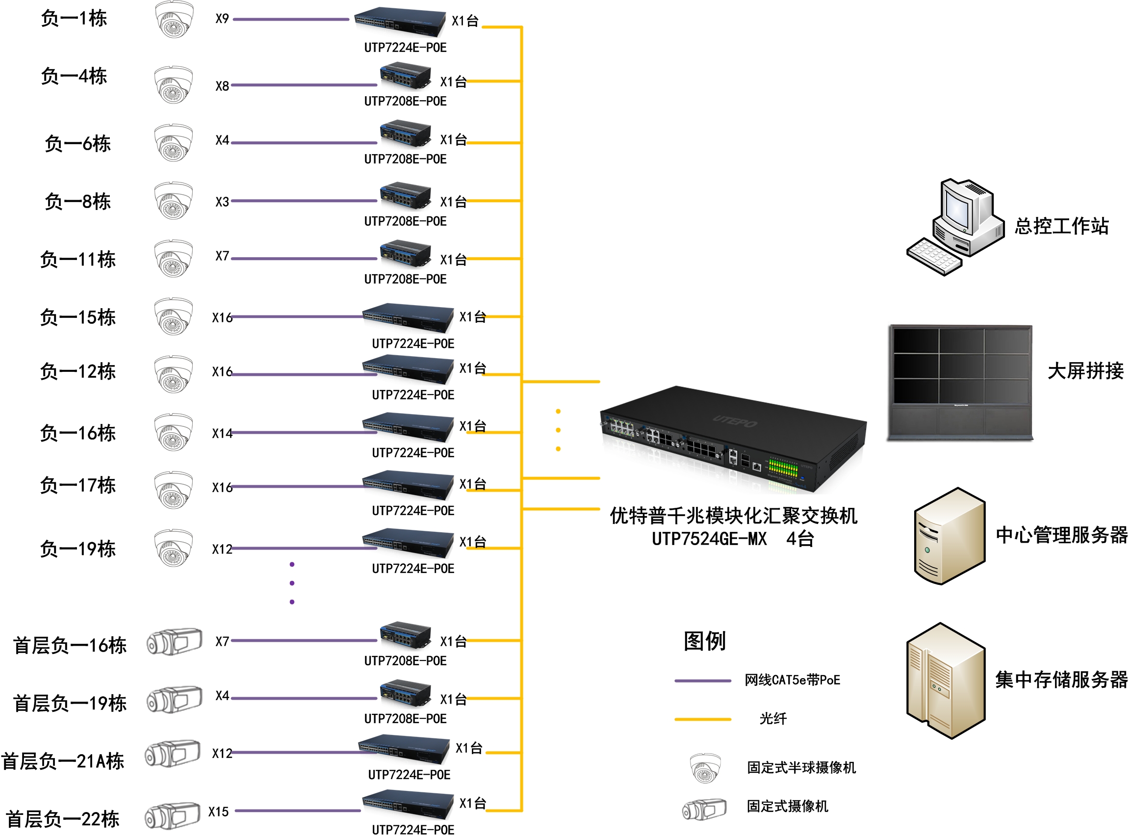 5、 降低工程施工成本:該方案可完成百路高清視頻監(jiān)控系統(tǒng)。成本低,施工簡單。