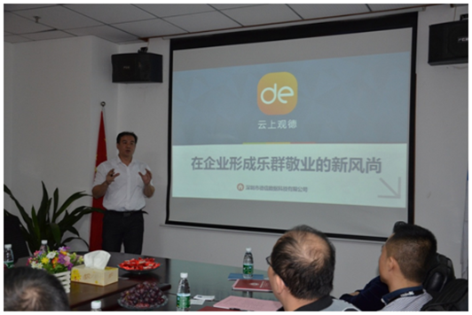 德信數(shù)據(jù)公司總經(jīng)理尹俊凱向考察團(tuán)介紹“云上觀德”UDB APP軟件。