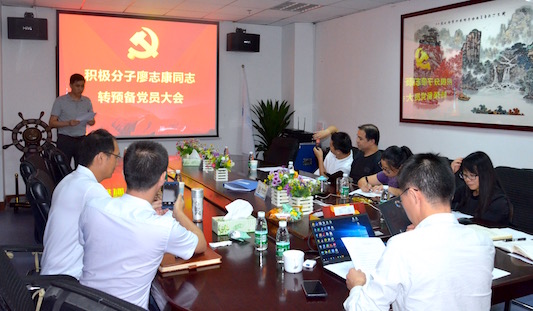 廖志康經(jīng)理宣讀轉(zhuǎn)預(yù)備黨員申請(qǐng)