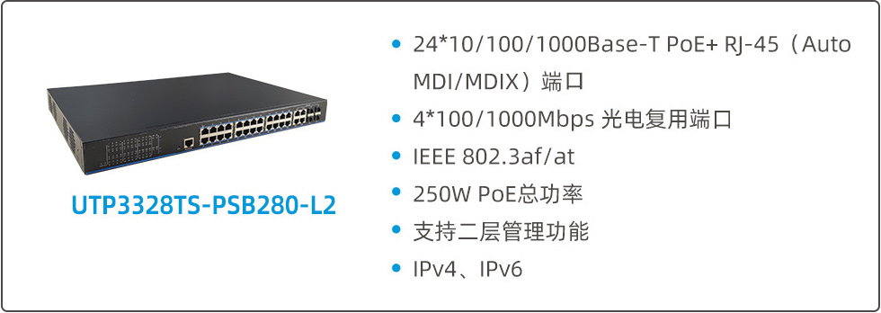 提供豐富的二層管理功能,支持PoE管理、IPv4靜態(tài)路由、802.1Q VLAN、QoS、鏈路聚合、SNMP等。