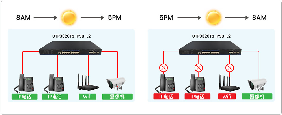 為您的辦公室定制PoE供電計(jì)劃表,您可以在非辦公期間停止對(duì)部分設(shè)備供電,節(jié)約能源。