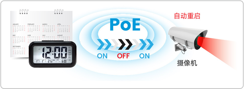 支持PoE Watchdog(看門狗)功能,實(shí)現(xiàn)PoE攝像機(jī)掉線自動(dòng)偵測(cè)、自動(dòng)重啟,減少系統(tǒng)維護(hù)成本。