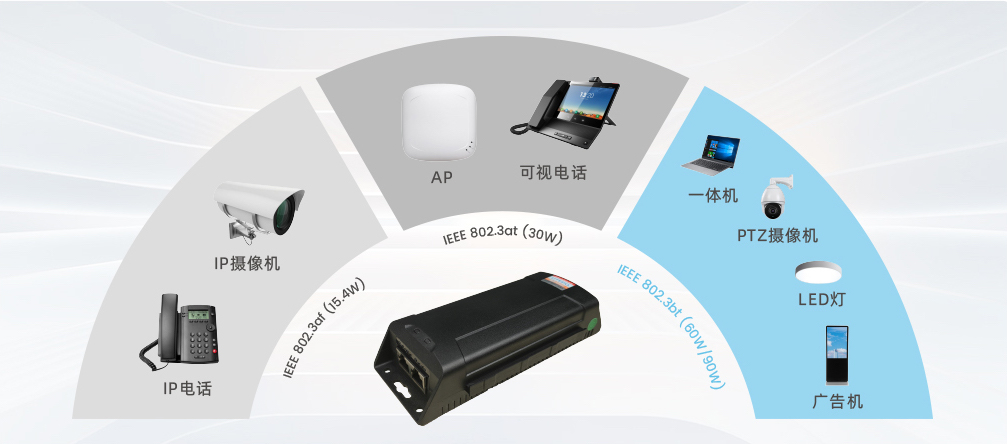優(yōu)特普 bt PoE大功率供電器兼容IEEE 802.3af/at/bt標(biāo)準(zhǔn),支持最大60W或90W的PoE功率。
