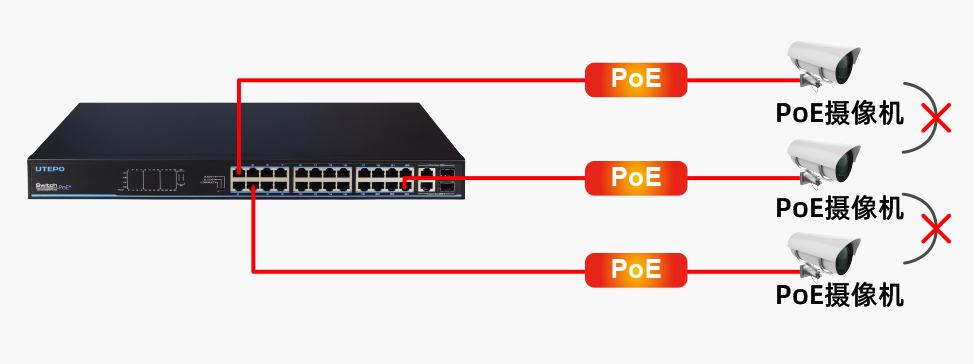 CCTV:下聯(lián)端口速率降為10Mbps,最遠(yuǎn)傳輸距離延長至250米。此模式下,產(chǎn)品支持PoE看門狗功能。