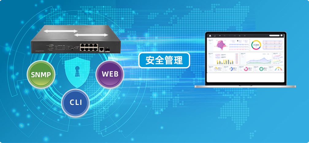 可通過WEB管理系統(tǒng)、CLI(telnet/console)、SNMP安全地、輕松地對其進行管理。