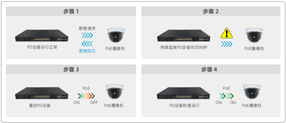支持6kV端口防雷,能適應復雜的安防監(jiān)控環(huán)境。