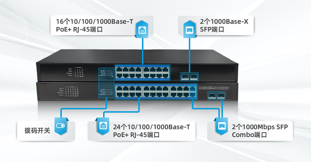 該系列提供兩個千兆上行SFP端口,可以遠距離上行到骨干交換機和監(jiān)控中心。距離可以延長至550米或更遠(根據(jù)SFP模塊的性能而定)。它們非常適用于企業(yè)數(shù)據(jù)中心和分布區(qū)內(nèi)的應用。