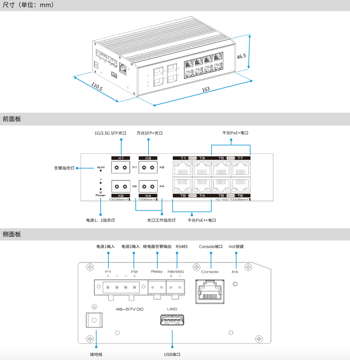 ● 4個(gè)10/100/1000Base-T PoE++RJ-45端口