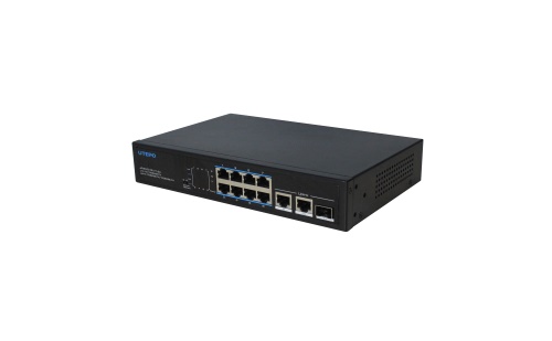 UTP3-SW0802T1F-SP120-D12A是8口百兆sPoE交換機(jī)(12V)。 交換機(jī)可提供8個(gè)百兆以太網(wǎng)RJ-45下聯(lián)端口、2個(gè)百兆上聯(lián)電口和1個(gè)百兆上聯(lián)光口。交換機(jī)所有下聯(lián)RJ-45端口都支持PoE供電,單個(gè)端口PoE功率最高可達(dá)15W,整機(jī)PoE功率可達(dá)115W。