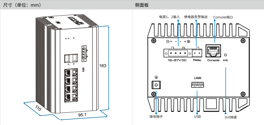 支持冗余電源,電源 1 (主):12~57V DC,電源 2 (備):12~57V DC |